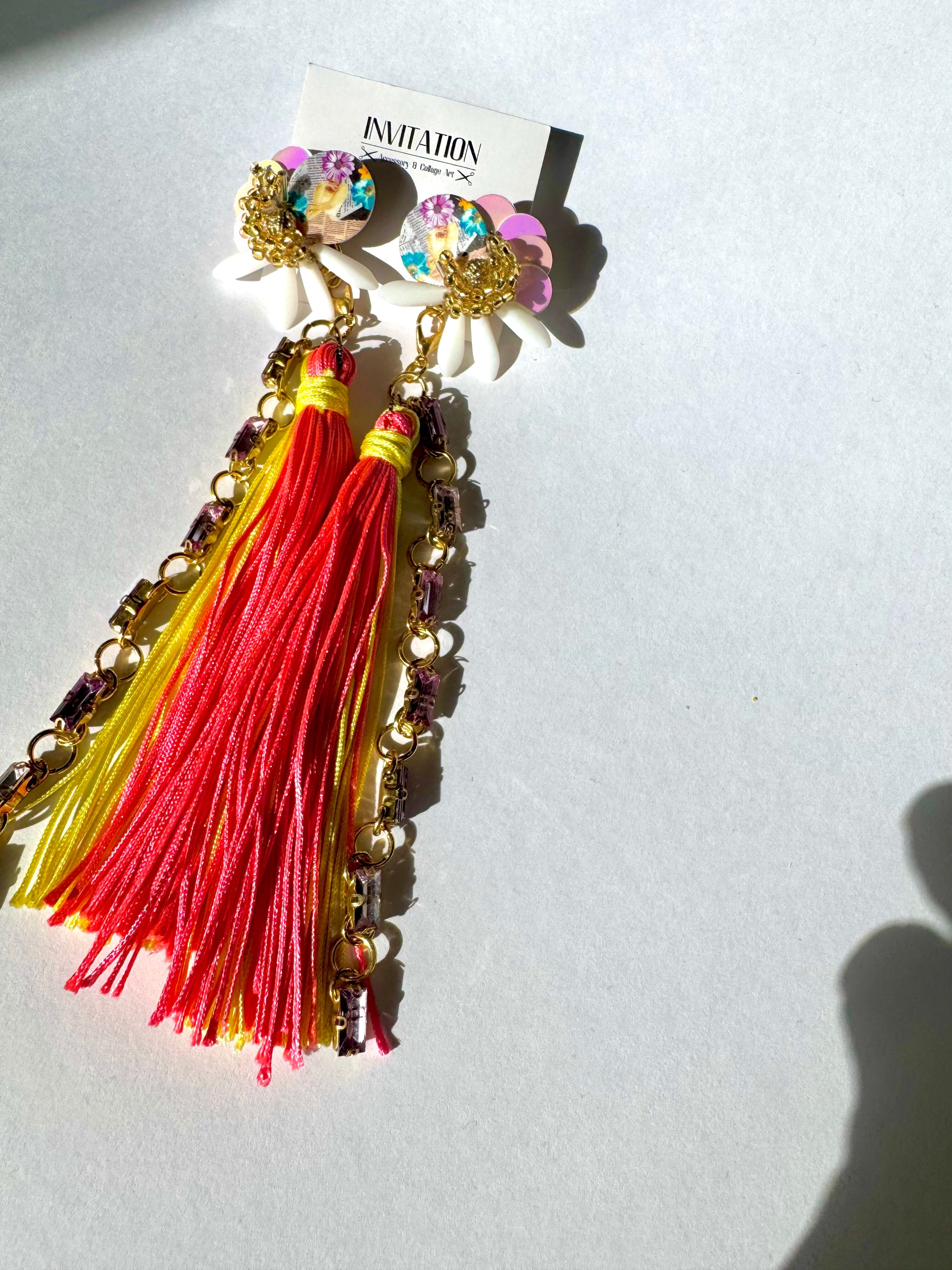 "マダムウィッチ" ピンク× イエロー ピアス
