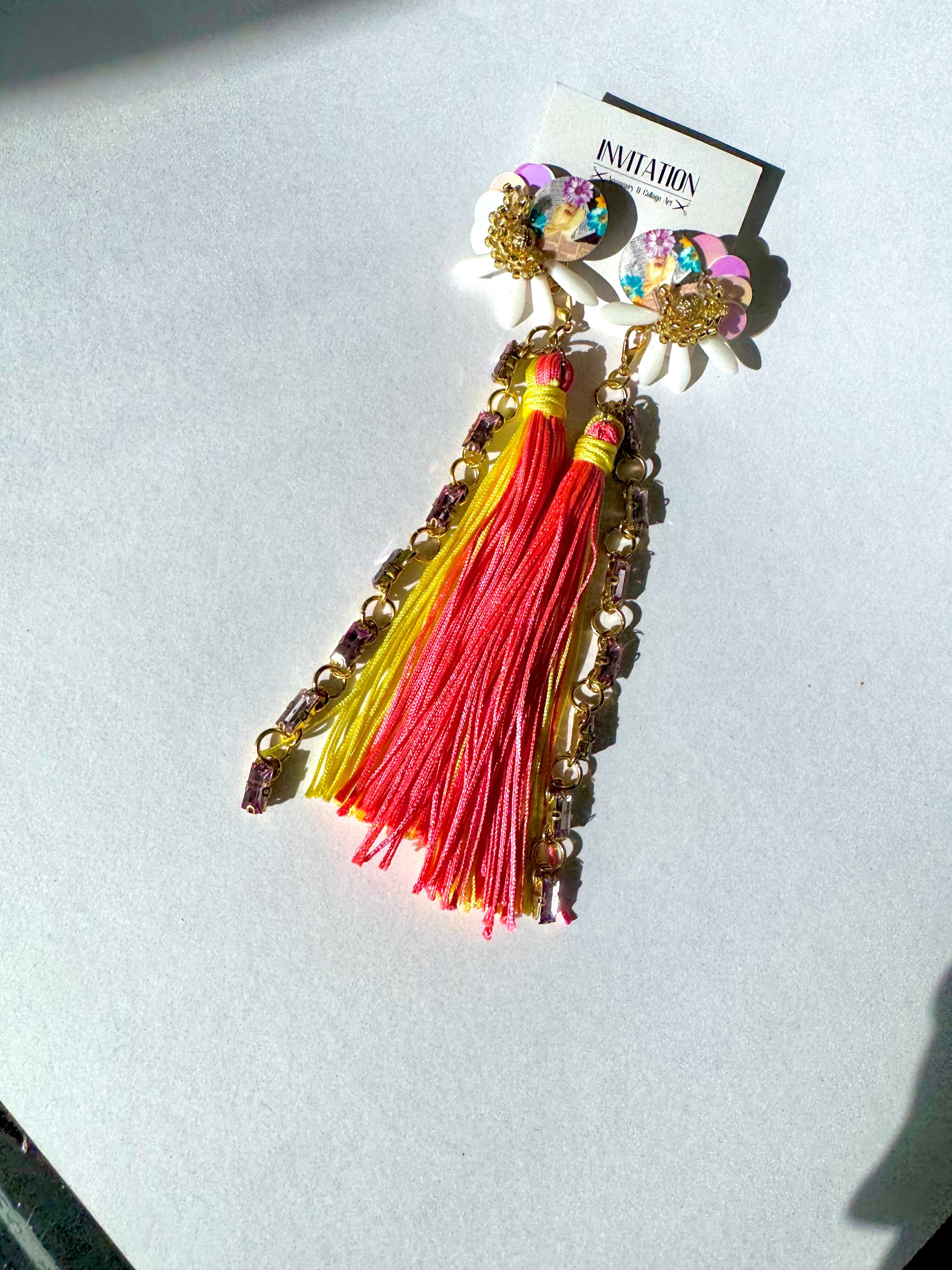 ビジューがタッセルとともにキラキラと揺れてくれます**